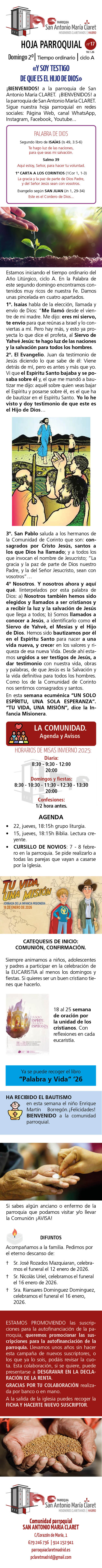 - HOJA PARROQUIAL Nº 17. 18.1.26 enero 19, 2026