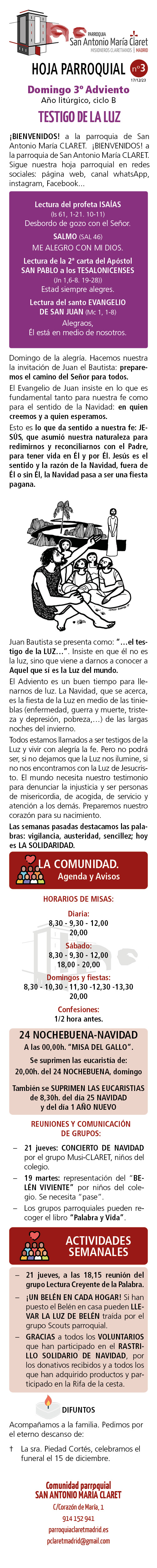 HOJA PARROQUIAL. Nº 3 17/12/23