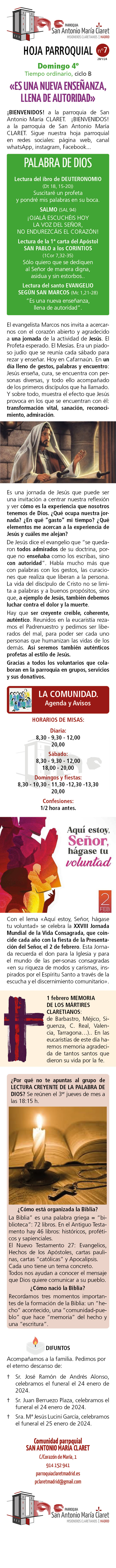 HOJA PARROQUIAL Nº 7. 28-01-24