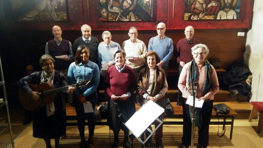 Existen varios coros en la parroquia. El más veterano de todos, formado por personas que llevan muchos años participando con esmero y generosidad en la vida de la parroquia, anima las celebraciones mayores, algunos funerales significativos y otros momentos importantes de la liturgia parroquial. Otro coro con amplio recorrido es el que aglutina a los adolescentes y jóvenes de la parroquia: habitualmente, son ellos quienes animan la celebración de la eucaristía dominical parroquial de 12,30 h. Los ensayos tienen lugar los domingos a las 11,45 h en la portería del colegio. También se convocan de vez en cuando ensayos especiales para algunas celebraciones importantes o para aprender canciones nuevas. Existe asimismo un coro de padres y niños que anima la eucaristía familiar de 11:30 h. También se reúnen para ensayar una hora antes de la celebración. Y otro coro juvenil que anima la misa de 20:00 h los domingos. De igual modo, sugerimos colaborar en él a todo el que lo desee. La eucaristía de 13,30 de los domingos también es animada un organista y un solista. No se trata en ningún caso de coros «profesionales» sino de grupos parroquiales que desean prestar un servicio a todos los fieles.