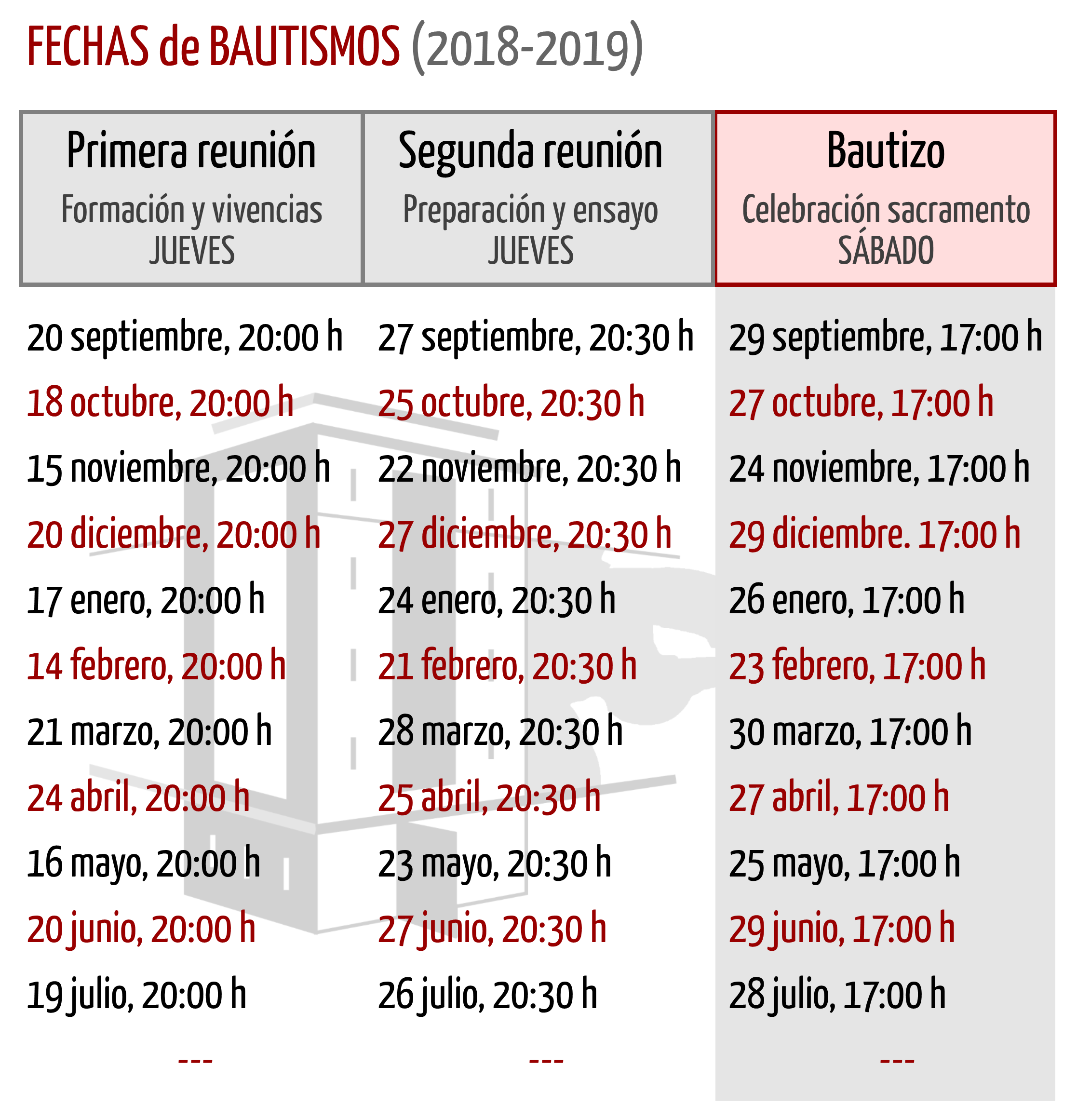 Fechas de bautismos (2018-2019)
